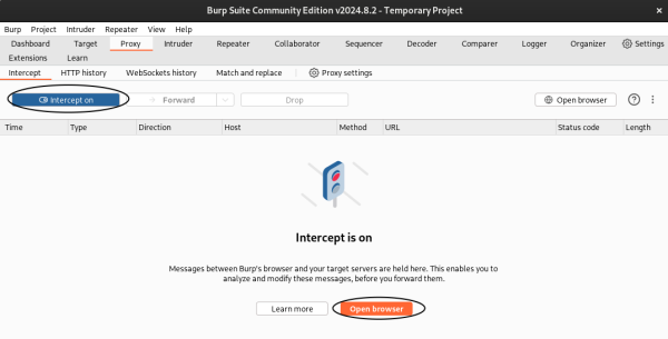 Install Burp Suite, go to intercept and turn it on, open the browser,