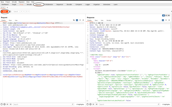 then go to the repeater and repeat many times to test if the application is susceptible to brute force attacks,