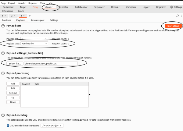 then go to payloads, set payload type to runtime file and then select a file with the password